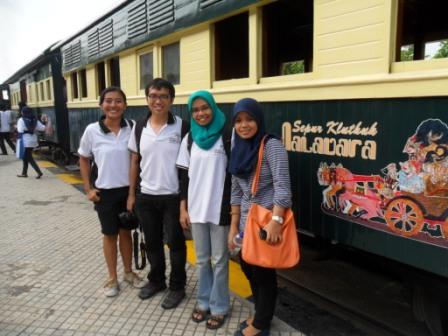 Yang paling senang adalah naik sepur klutuk Jaladara. Sepur yang berbahan bakar kayu. Membayangkannya saja sudah luar biasa apa lagi naik dengan gratisan. Soalnya naik kereta ini mahal sampai ratusan ribu, bahkan warga Solo sendiri banyak yang belum merasakan sensasinya. Sepur ini desainnya sangat unik terbuat dari kayu. Rute yang ditempuh juga melewati tengah kota, bertepatan pula dengan acara car free day. Sudah pasti, kita jadi tontonan warga kota Solo.